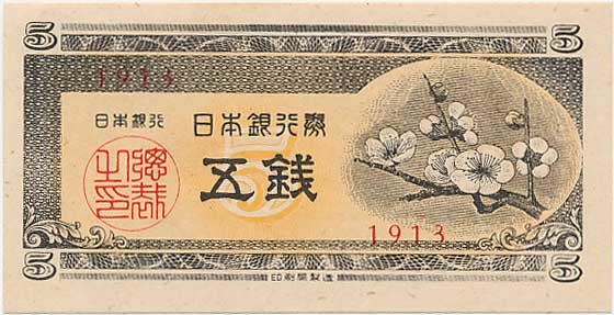 梅5銭 (日本銀行券A号5銭) 未使用