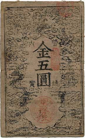 分銅5円(改造兌換銀行券) 極美品
