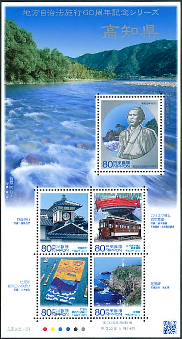 ふるさと切手 地方自治法施行60周年記念シリーズ 高知県 80円シート