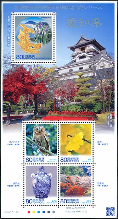ふるさと切手 地方自治法施行60周年記念シリーズ 愛知県 80円シート