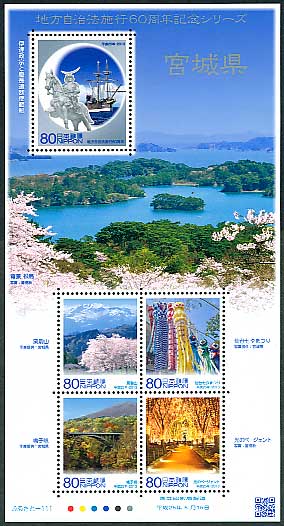 ふるさと切手 地方自治法施行60周年記念シリーズ 宮城県 80円シート