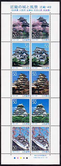 ふるさと切手 近畿の城と風景(奈良県 大阪府 滋賀県 和歌山県 兵庫県)50円シート
