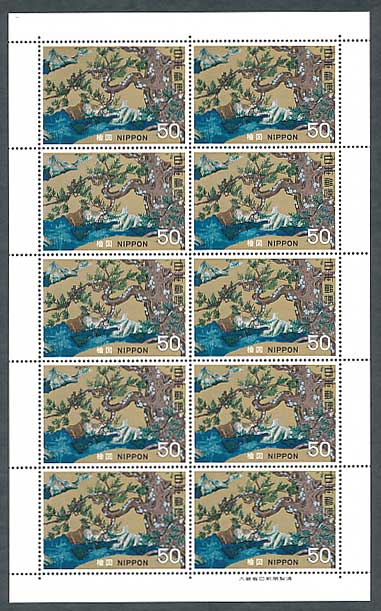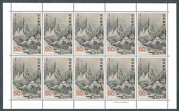 第1次国宝シリーズ 室町時代 秋冬山水図(雪舟) 50円切手シート