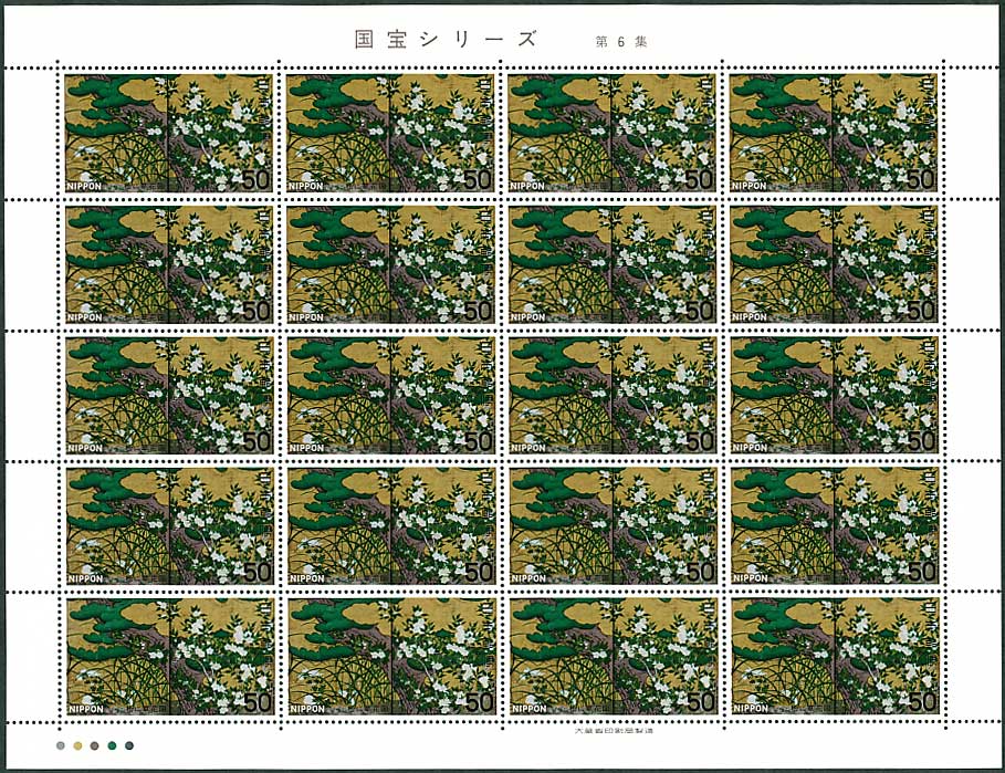 第1次国宝シリーズ 桃山時代 桧図(狩野永徳) 50円切手シート