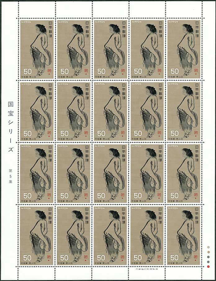 第2次国宝シリーズ 第5集 寒山図(可翁筆) 50円切手シート