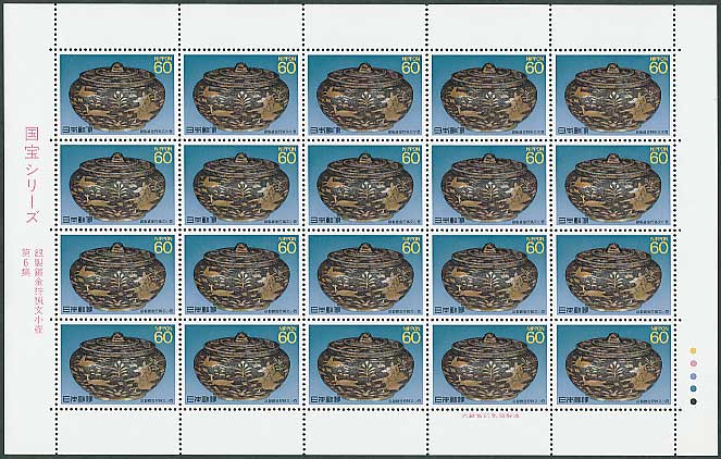 第3次国宝シリーズ 第6集 銀製鍍金狩猟文小壺 60円切手シート