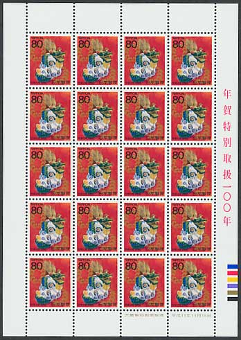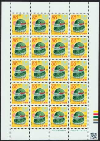 年賀切手 平成25年用 門司ヶ関人形・干支の巳 80円シート