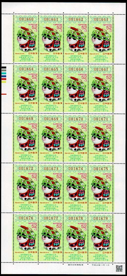 平成30年用(2018年) 年賀切手 寄付金付き 52円+3円シート