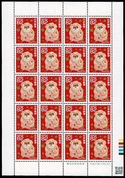 年賀切手 平成28年用 土佐和紙漆喰張り子 こだき申 82円シート