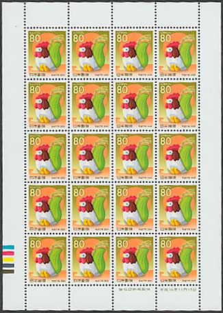 年賀切手 平成17年用 下野土鈴・十二支・とり 80円20枚シート