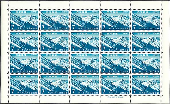 第2次国立公園シリーズ 南アルプス 北岳と駒ヶ岳 7円切手シート