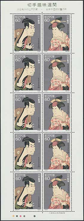 切手趣味週間 大谷鬼次の江戸兵衛・岩井半四郎の重の井(東州斎写楽)60円シート