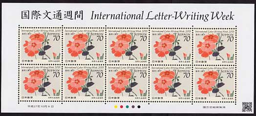 平成27年(2015年)国際文通週間 藤袴に撫子 70円シート