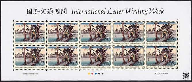 平成27年(2015年)国際文通週間 東海道五拾三次之内 吉原 90円シート