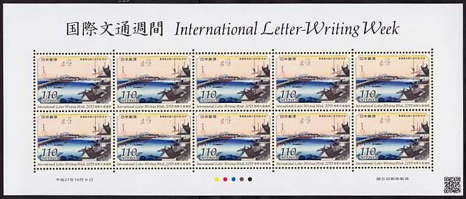 平成27年(2015年)国際文通週間 東海道五拾三次之内 吉田 110円シート