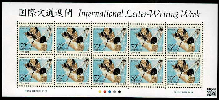 平成29年(2017年)国際文通週間 しだれ桜に小鳥 70円シート