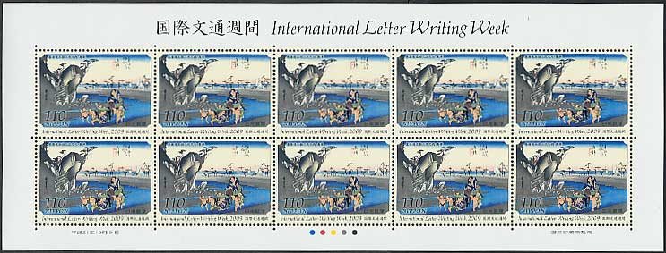 平成21年(2009年) 国際文通週間 東海道五拾三次之内・奥津 110円シート