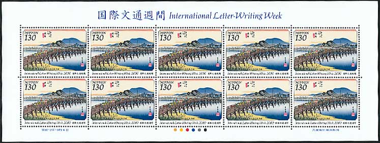 平成20年(2008年)国際文通週間 東海道五拾三次之内 石部 130円シート