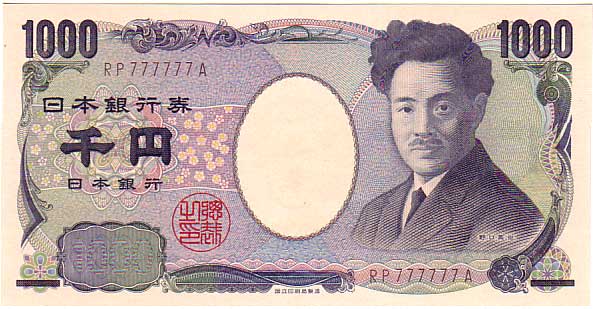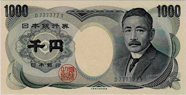 珍番号 夏目漱石千円 紺1桁 D777777Y番 大蔵省 未使用