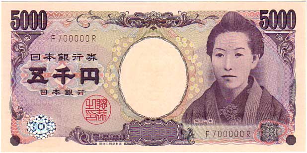 珍番号 樋口一葉5千円 茶 1桁 F700000R番 未使用