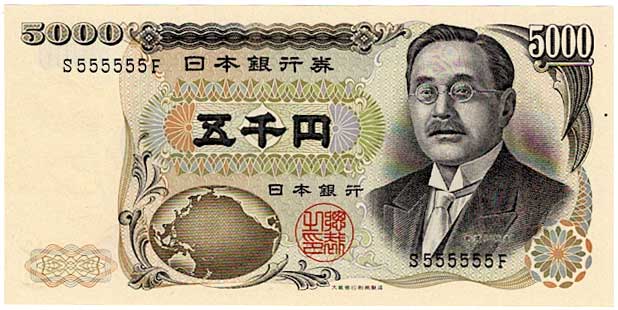 珍番号 新渡戸稲造5千円 黒1桁 S555555F番 大蔵省印刷局 未使用