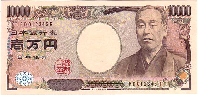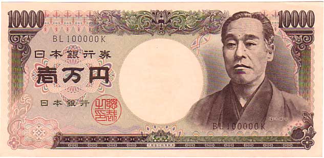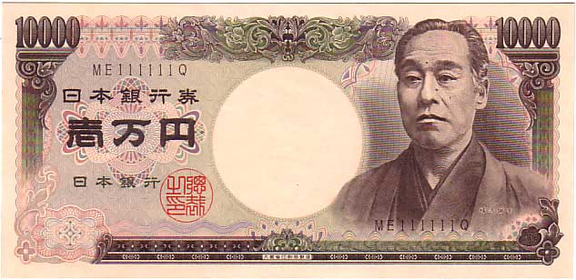 珍番号 旧福沢一万円 茶 2桁 QJ000001C番 大蔵省印刷局 未使用