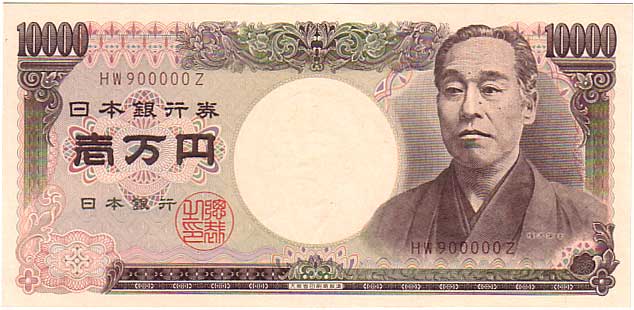 珍番号 旧福沢一万円 茶 2桁 HW900000Z番 大蔵省印刷局 未使用