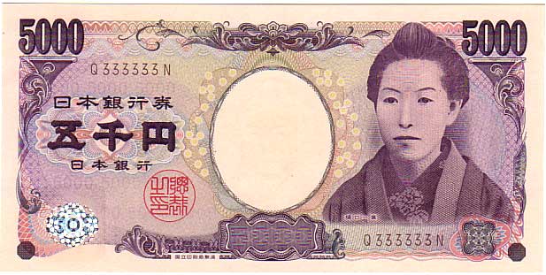珍番号 樋口一葉5千円 茶 1桁 Q333333N番 国立印刷局 未使用