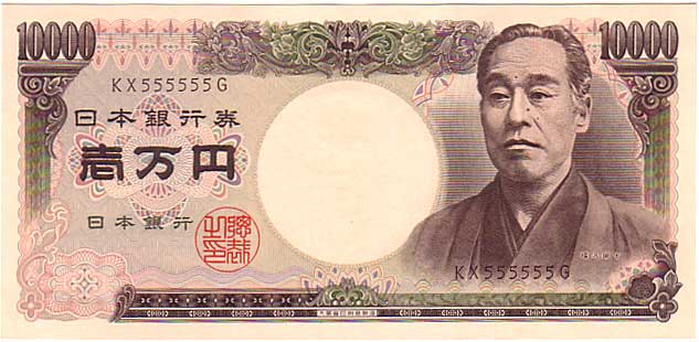珍番号 旧福沢一万円 黒 2桁 KX555555G番 大蔵省印刷局 未使用