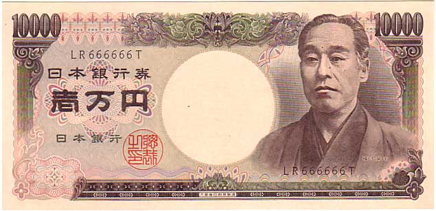 珍番号 旧福沢一万円 黒 2桁 LR666666T番 大蔵省印刷局 未使用