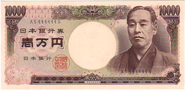 珍番号 旧福沢一万円 黒2桁 AS444444S番 大蔵省印刷局 未使用
