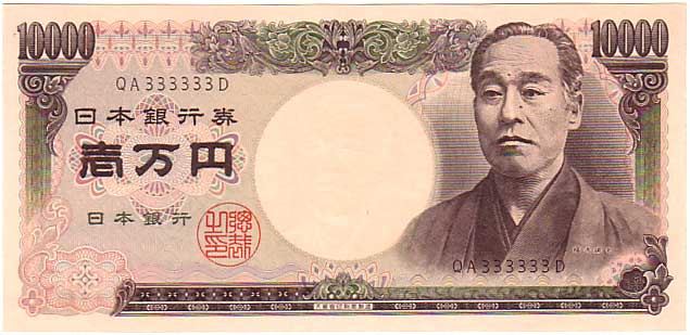 珍番号 旧福沢一万円 黒 2桁 QA333333D番 大蔵省印刷局 未使用