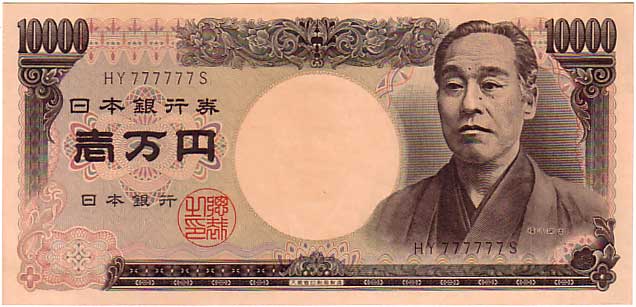 珍番号 旧福沢一万円 黒 2桁 HY777777S番 大蔵省印刷局 未使用