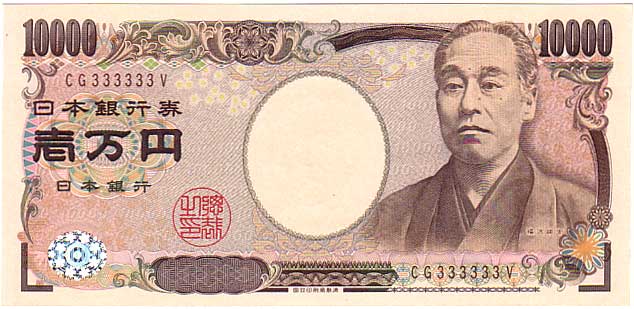 珍番号 新福沢一万円 茶 2桁 CG333333V番 国立印刷局 未使用