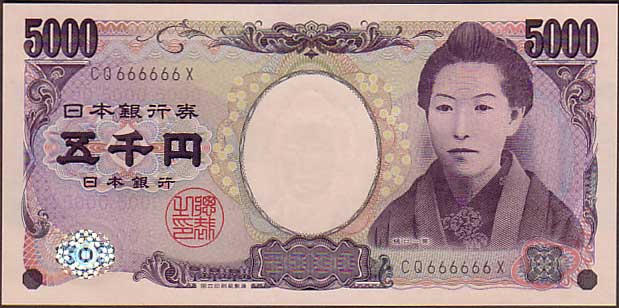 珍番号 樋口一葉5千円 黒2桁 CQ666666X番 国立印刷局 未使用