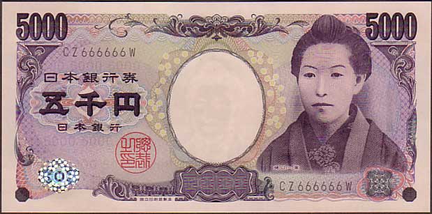 珍番号 樋口一葉5千円 黒2桁 CZ666666W番 国立印刷局 未使用