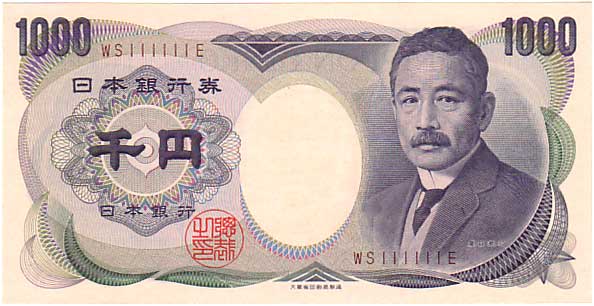 珍番号 夏目漱石千円 茶2桁 WS111111E番 大蔵省 未使用