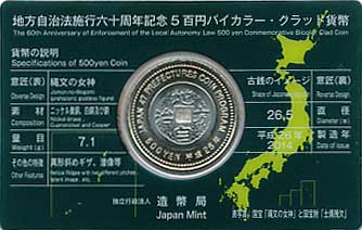 地方自治法施行60周年記念500円バイカラー・クラッド カード型ケース入り(山形県)