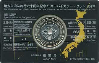 地方自治法施行60周年記念500円バイカラー・クラッド カード型ケース入り(福岡県)