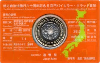 地方自治法施行60周年記念500円バイカラー・クラッド カード型ケース入り(東京都)