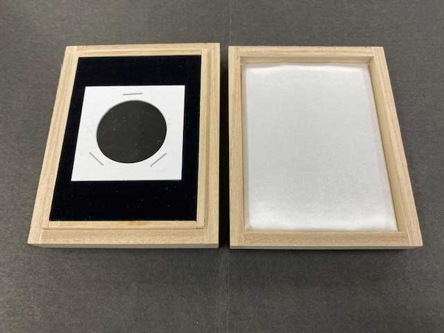 コインホルダーがそのまま入る形式の桐箱です。 高価な貨幣類の保管に適しています。 中敷の色は黒色になります。 寸法:縦103mm、横82mm、高さ26mm