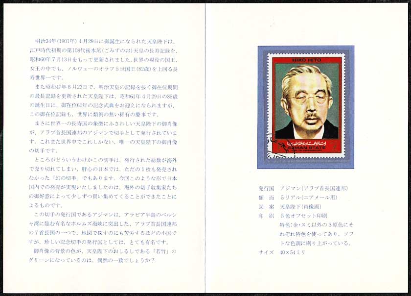 昭和天皇ご肖像切手 5リヤル アジュマーン首長国発行(アラブ首長国連邦)