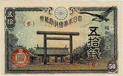 靖国50銭 (政府紙幣50銭) 昭和19年 未使用