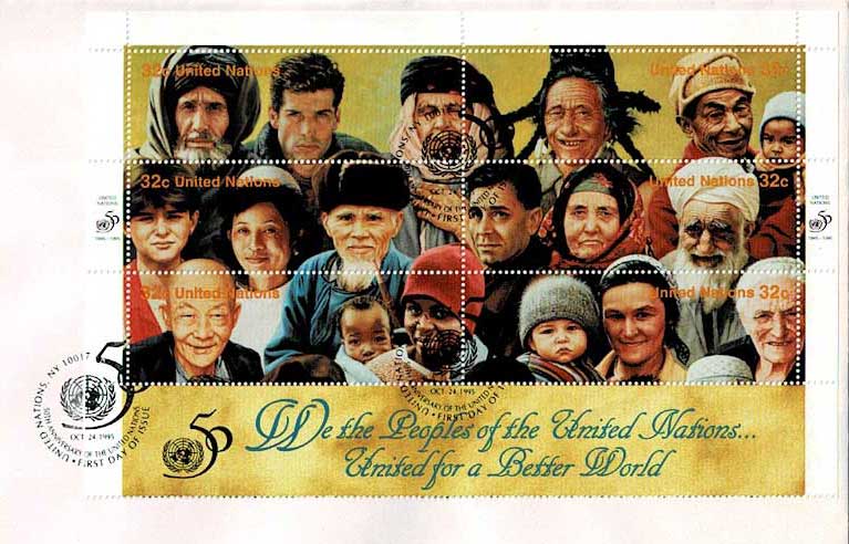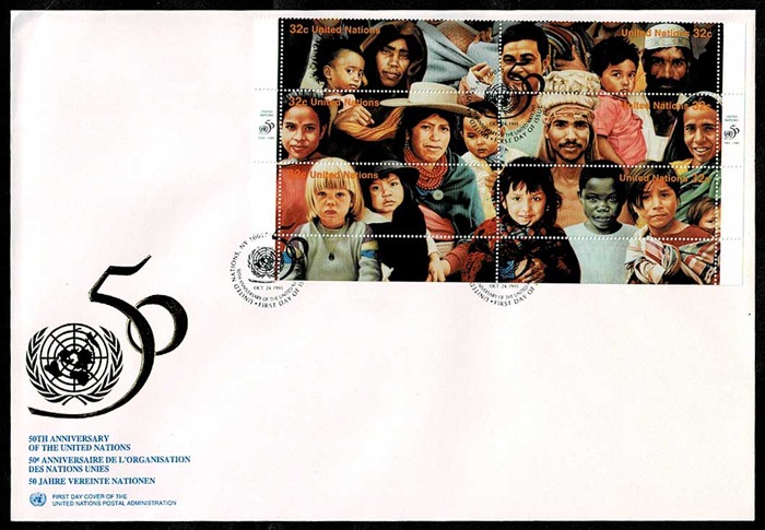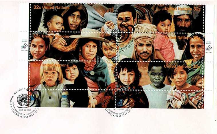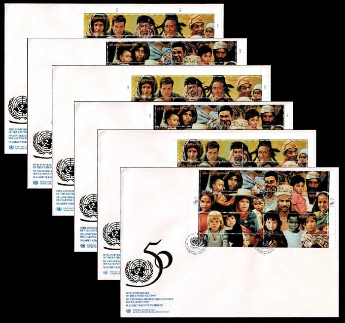 1995年 国連50周年記念切手 大判初日カバー6種セット 国連発行