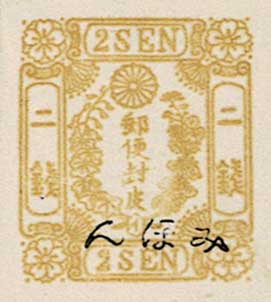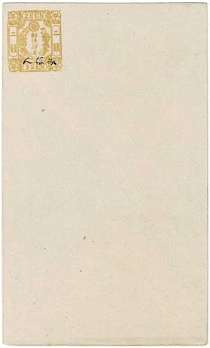 みほん字入り 郵便切手つき封筒 角形カナ入り 2銭 イ