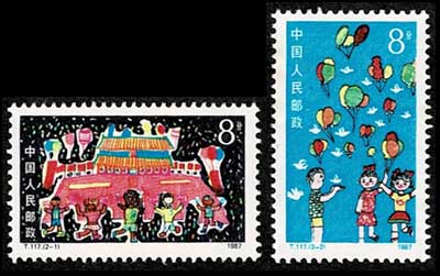 発行国:中国 JPS新中国切手カタログ番号:2227-2228 発行日:1987年6月1日 額面:8分×2枚 状態:未使用・美品 図柄:楽しい休日、平和と幸福