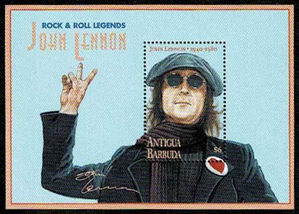 1995年 ジョン・レノン15周忌 切手小型シート アンティグア・バーブーダ発行
