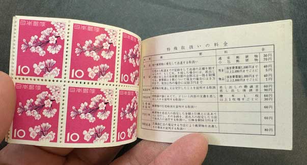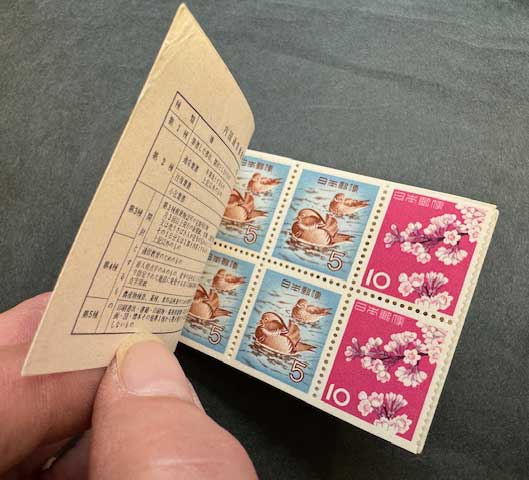 日本切手カタログ番号:帳25 発行日:昭和28年4月1日(1953年) 状態:未使用・美品 額面:5円×4枚、10円×8枚 図柄:おしどり、染井吉野