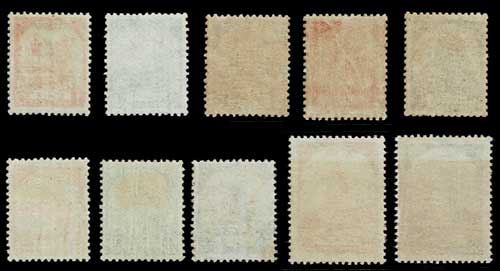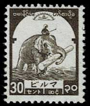 日本切手カタログ番号:占14~23 発行日:昭和18年(1943年) 発行枚数:-- 状態:未使用・美品 額面:1セント、2セント、3セント、5セント、10セント、 15セント、20セント、30セント、1ルピー、2ルピー 図柄:水がめを運ぶ少女、働く象、時計塔