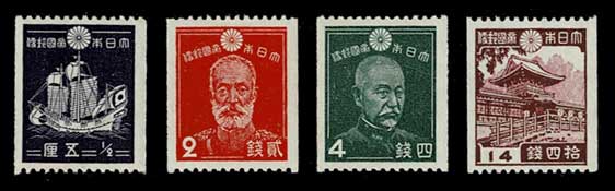 通常切手 昭和コイル切手 全4種セット 昭和13年(1938年)~昭和14年(1939年)